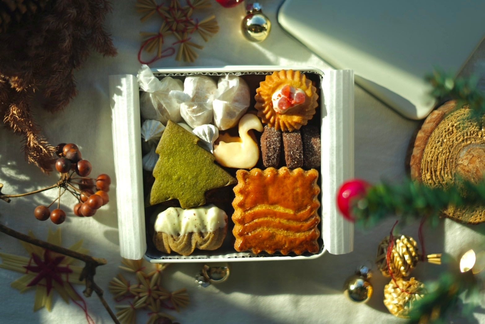 久喜菖蒲公園にまつわるモチーフ(池にたつ穏やかな波、白鳥、大きな針葉樹、など)をイメージして作った、クリスマスにぴったりのこの缶には、さまざまな風味豊かなクッキーが詰まっており、自分へのご褒美や、家族や友人との楽しいひとときのお供に最適です。